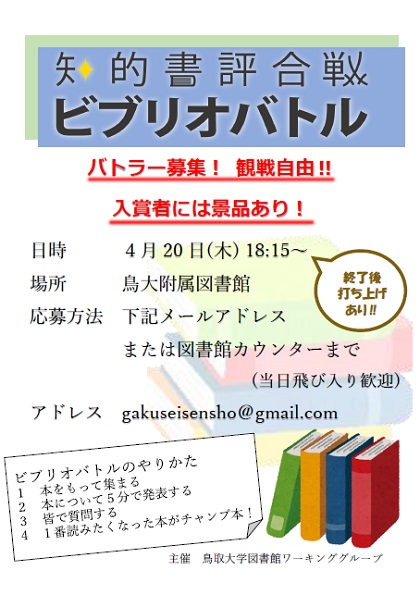 4月20日(木)には、第8回目となるビブリオバトルを開催予定。